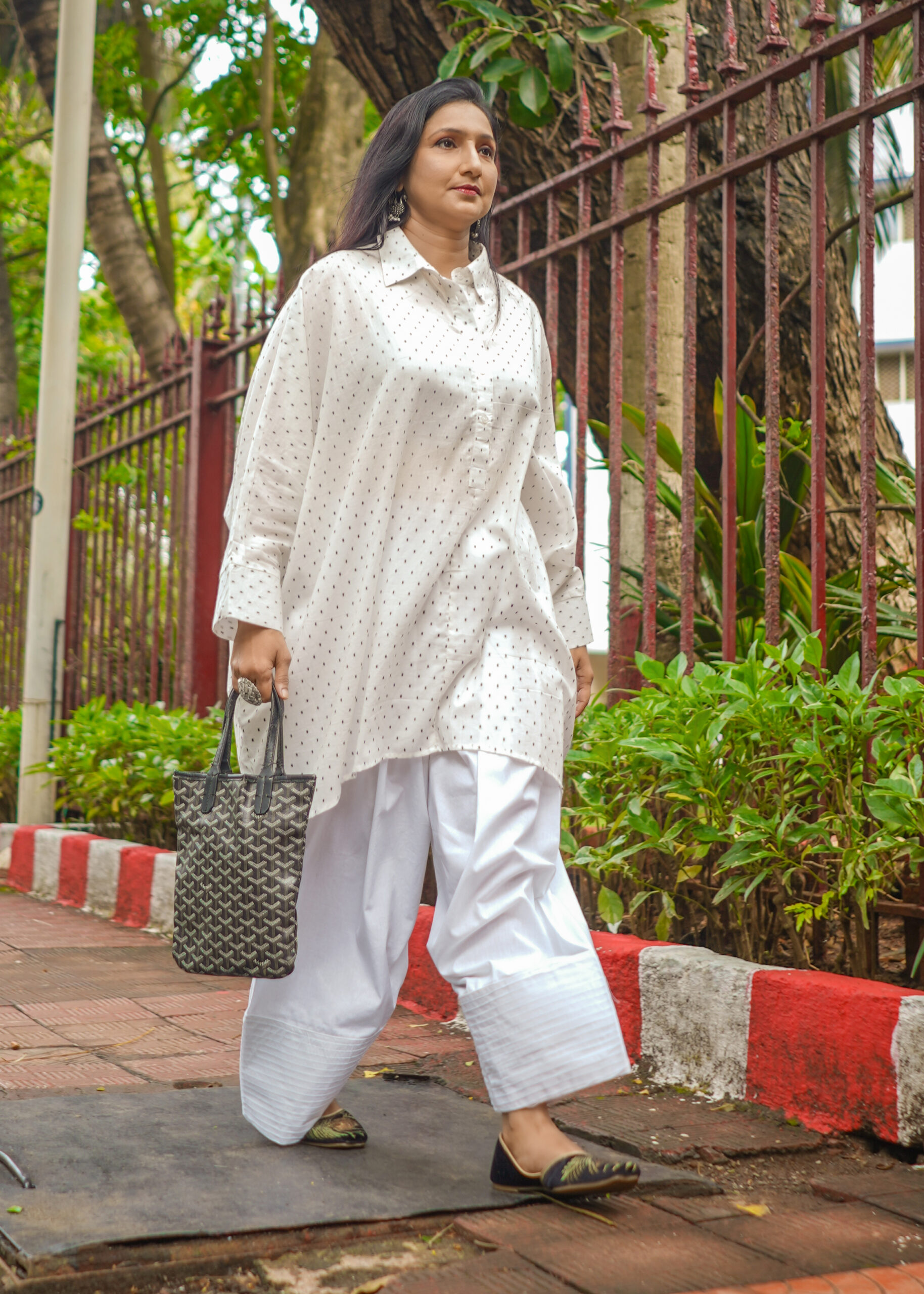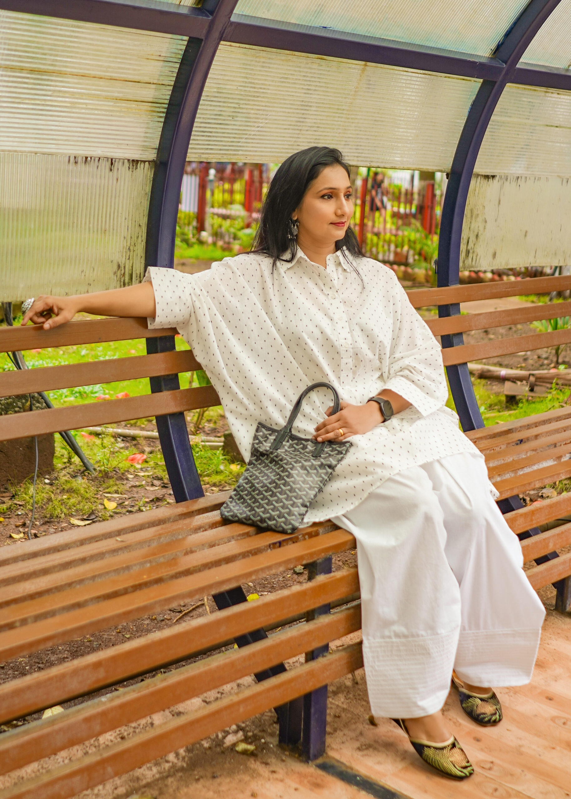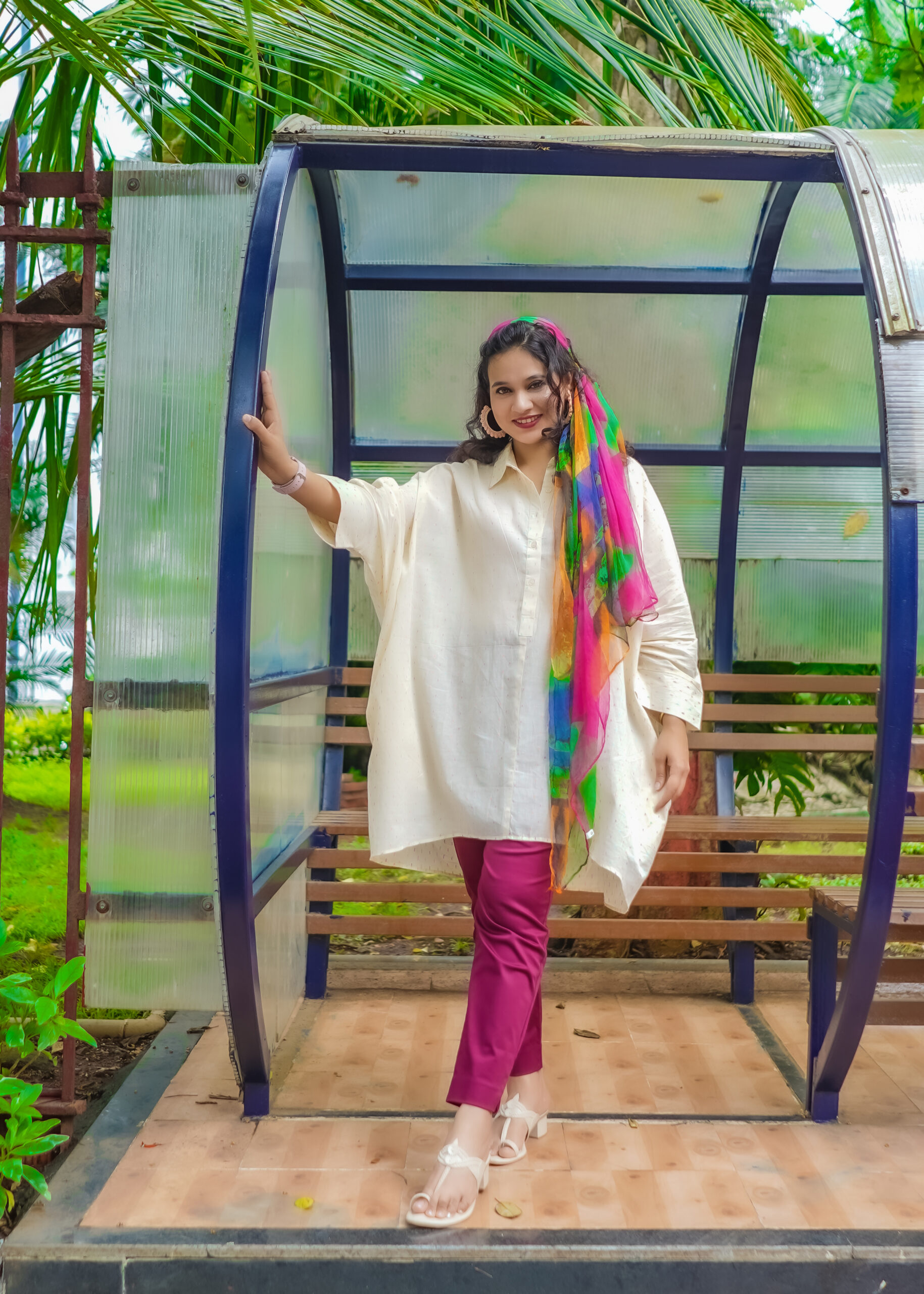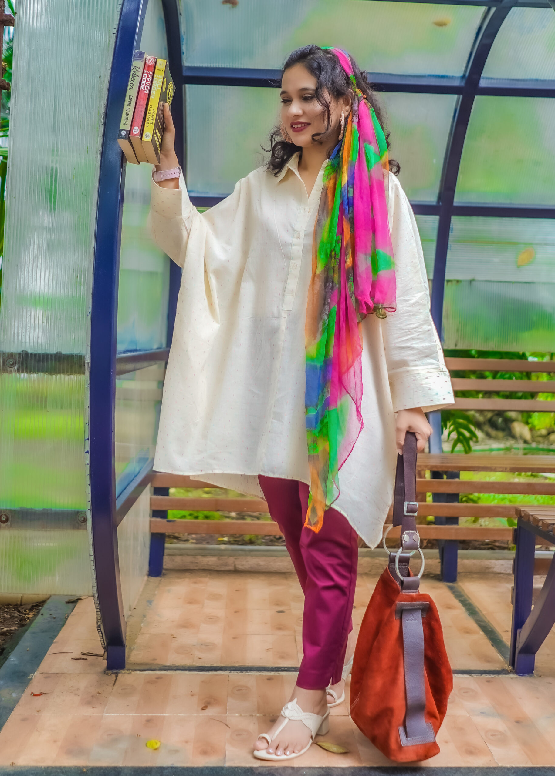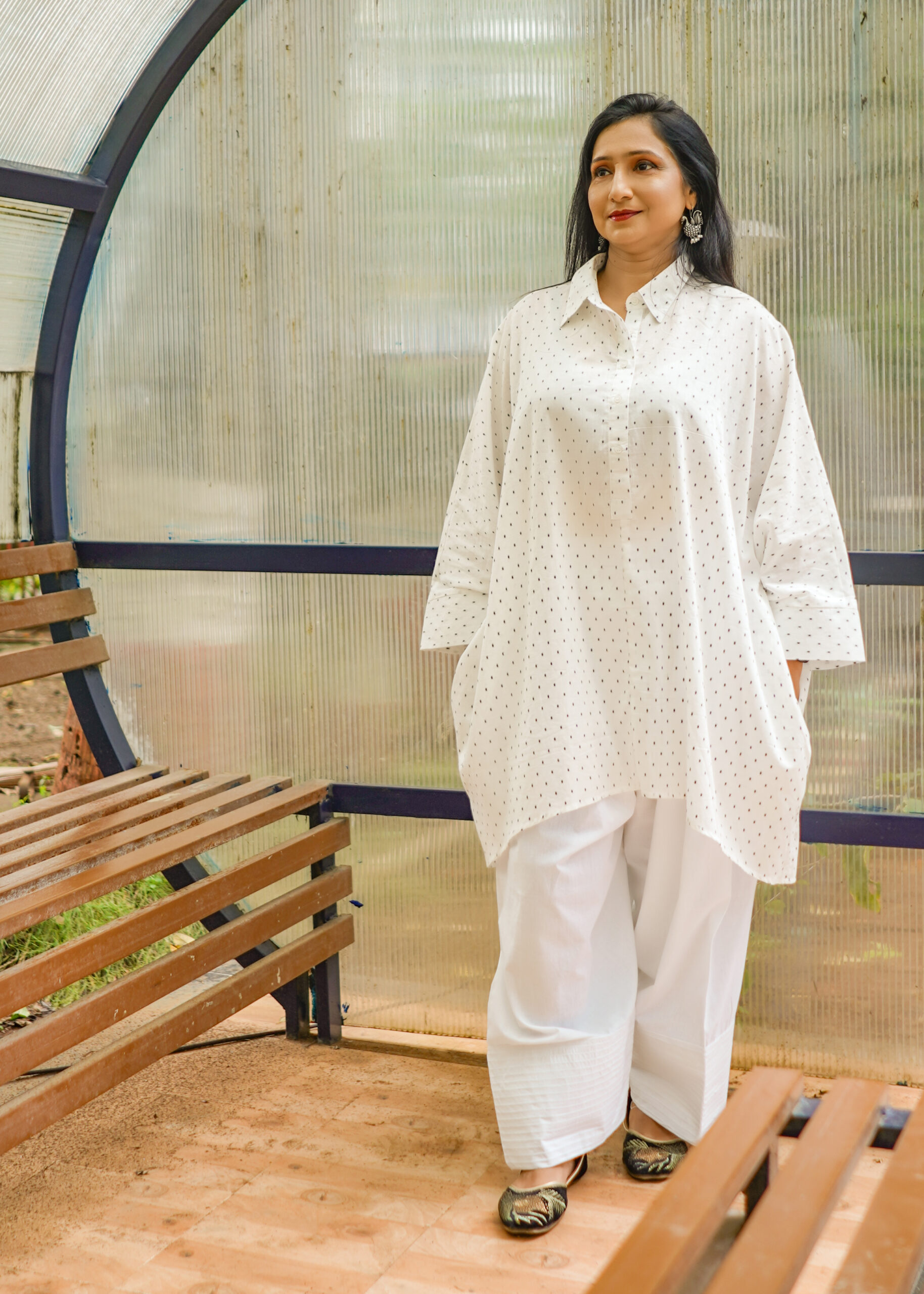 Cloud Drift is crafted in handwoven fine cotton, designed for effortless comfort and airy movement. Its relaxed silhouette drapes softly over your curves, while practical pockets keep your hands at ease.