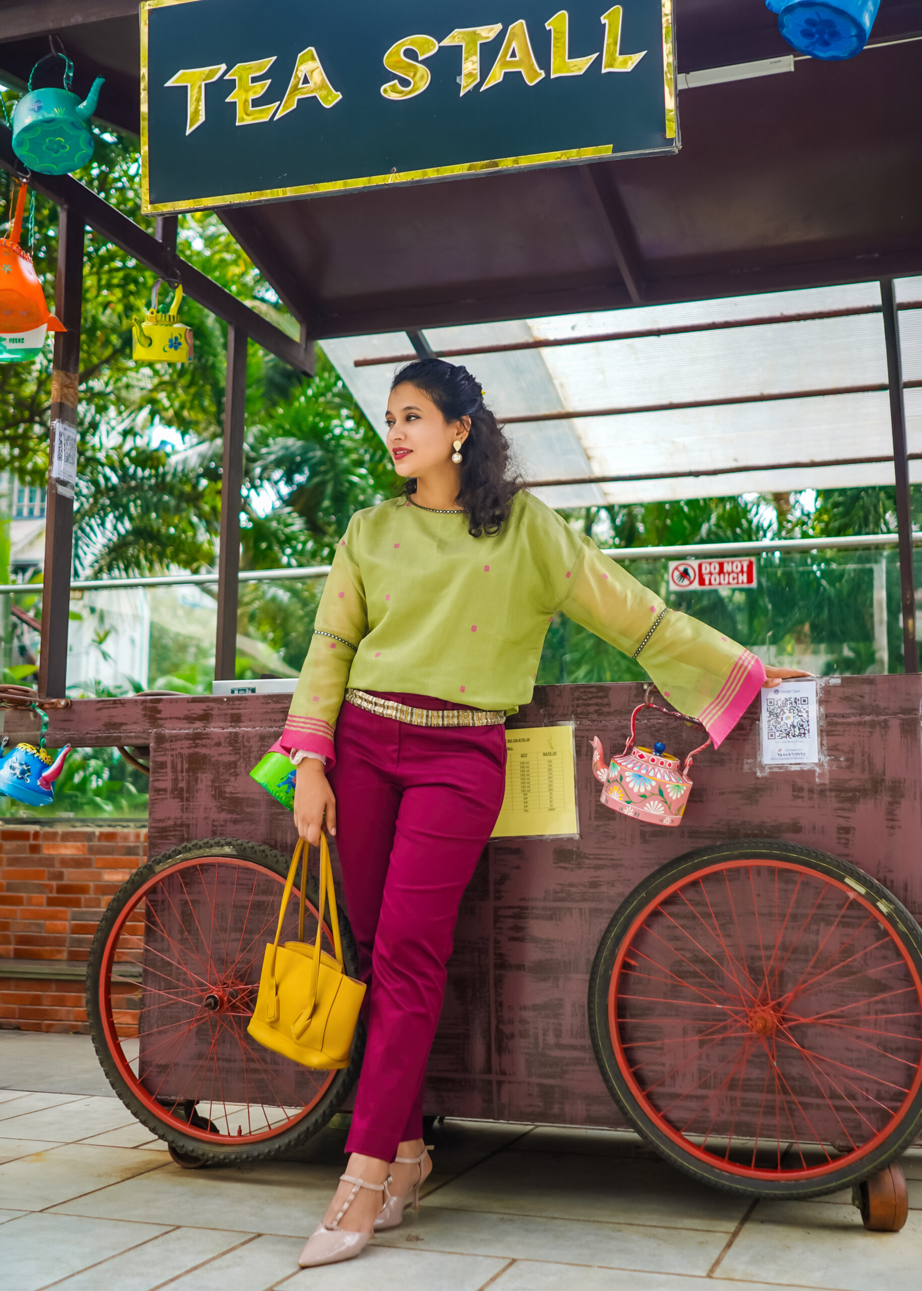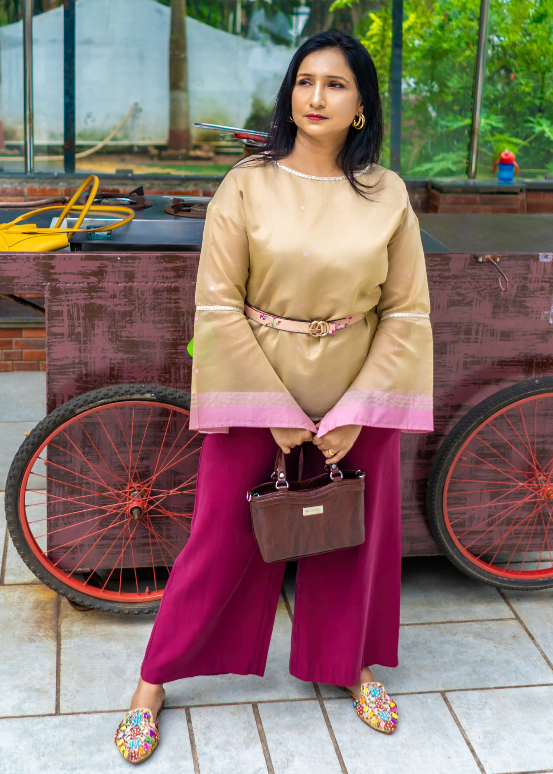 A handloom silk-cotton top with flared sleeves and mirrorwork detail.
