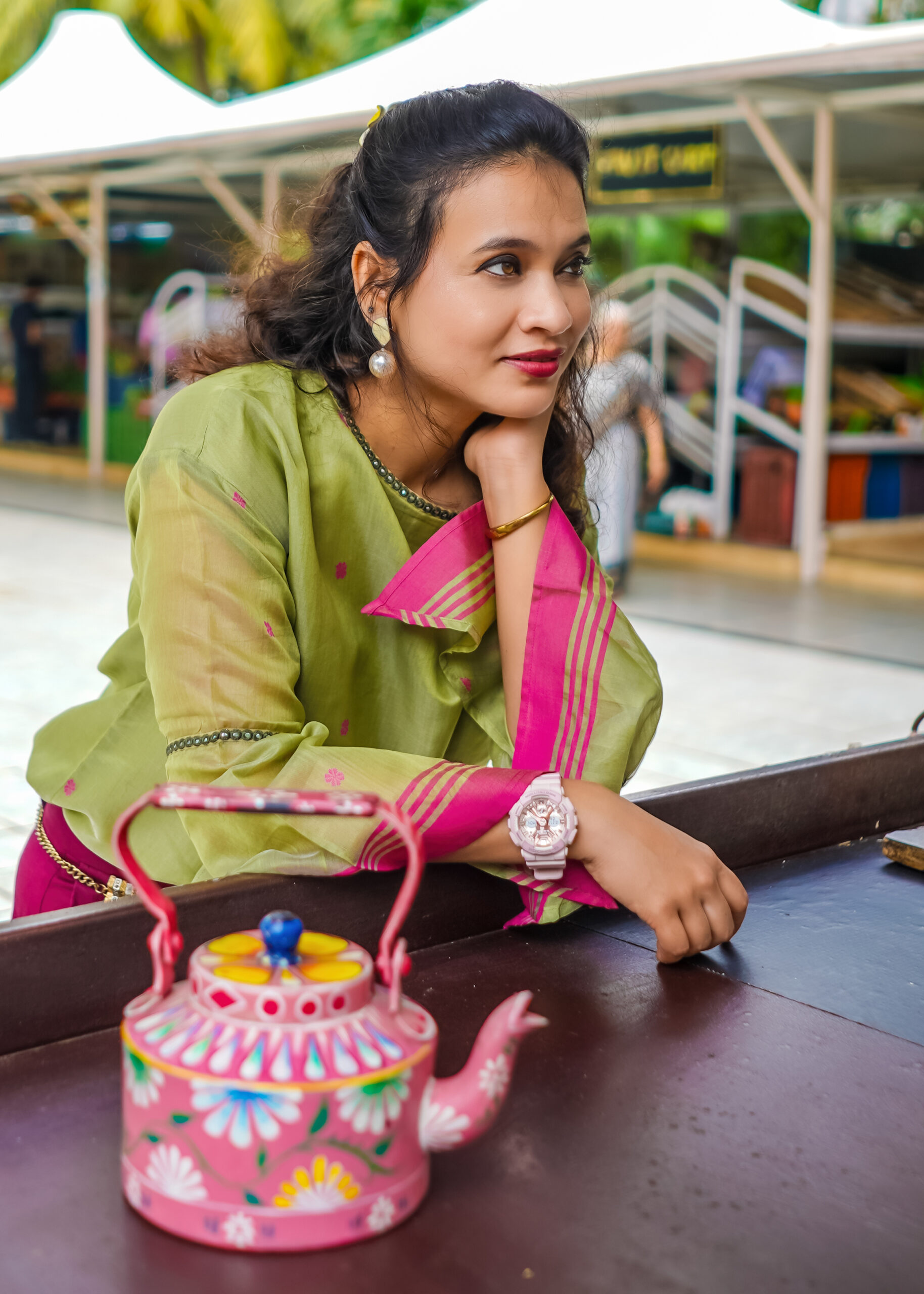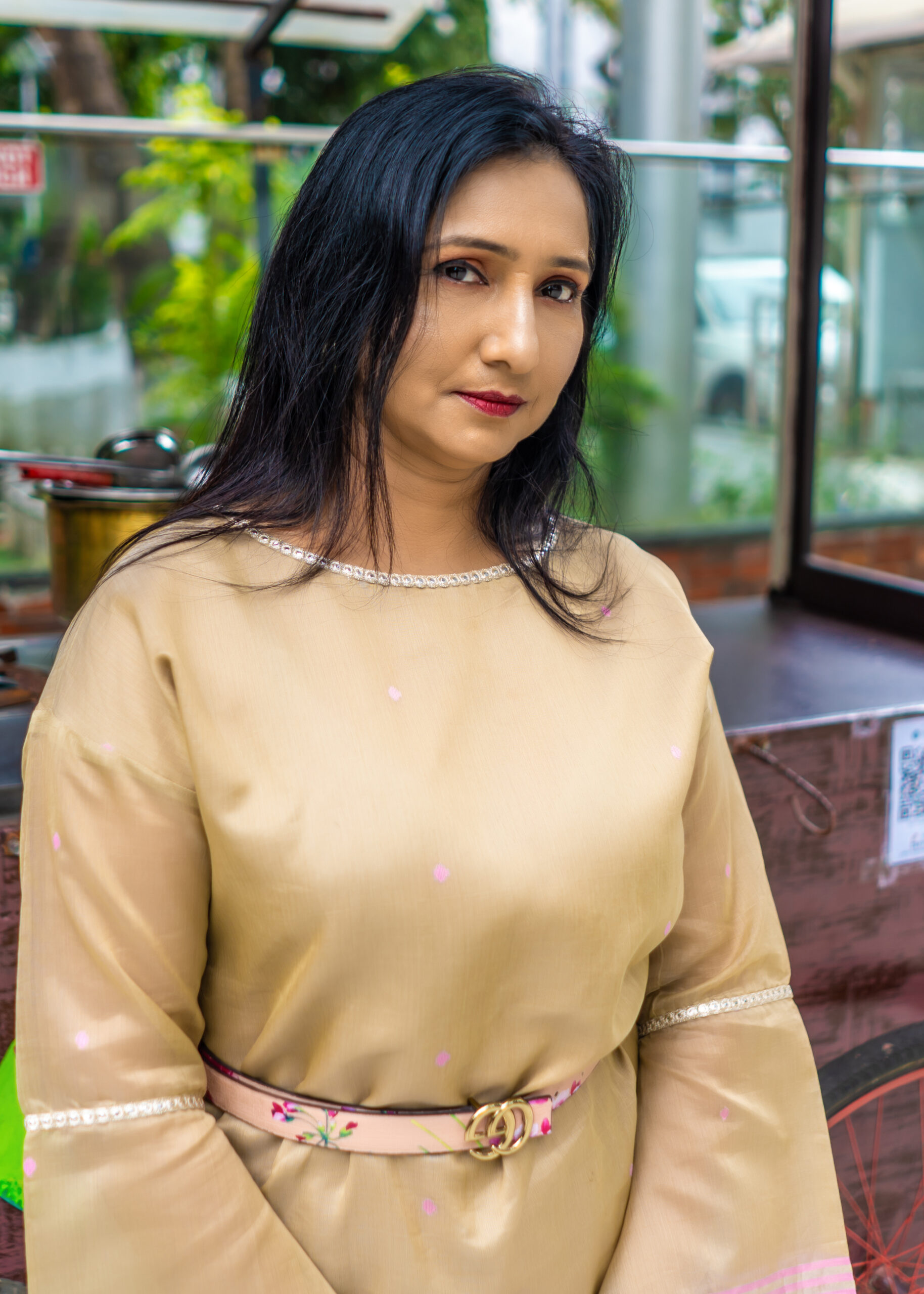 Crafted in breathable handloom cotton-silk, this piece offers all-day comfort while celebrating timeless tradition with a modern sensibility. Flared sleeves provide ease of movement, and delicate mirrorwork adds a subtle touch of drama, balancing elegance with effortless style.